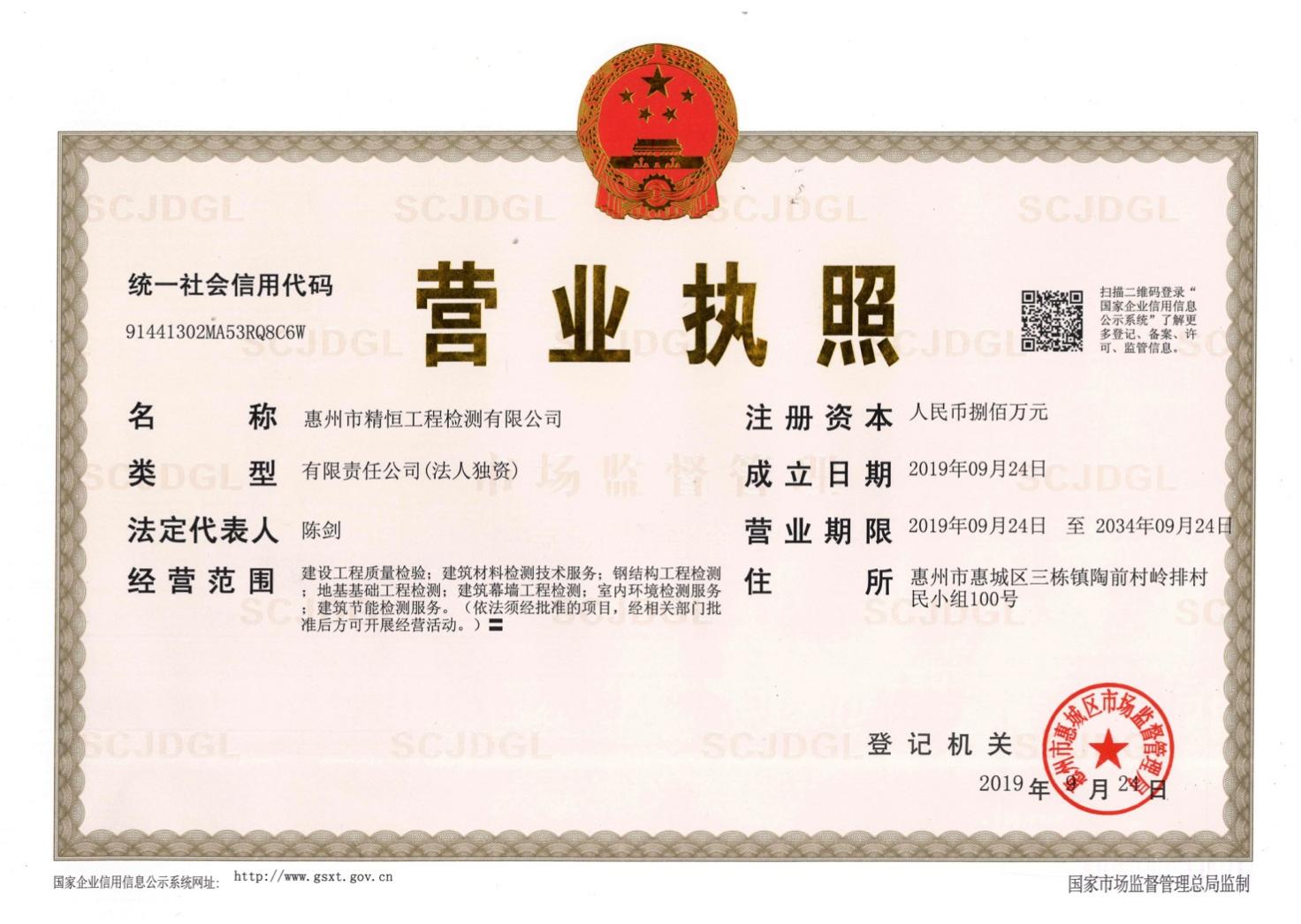 惠州市精恒工程检测有限公司是开云体育-开云(中国) 旗下的全资子公司,位于惠州市惠城区三栋镇陶前村岭排村民小组100号,成立于2019年9月24日,注册资本800万元,是一家专业从事第三方检测、具有独立法人资格的检验检测服务机构。